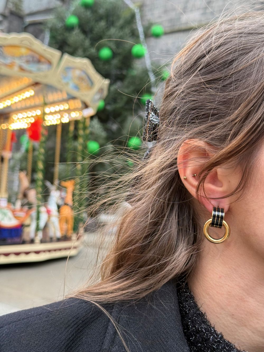 Boucles d’oreilles rondes noires et dorées. Tous nos produits sont fabriqués en acier inoxydable, un matériel qui résiste à l’eau et ne se rouille pas dans le temps. Ils sont garantis sans nickel, sans cadmium et sans sel de plomb.